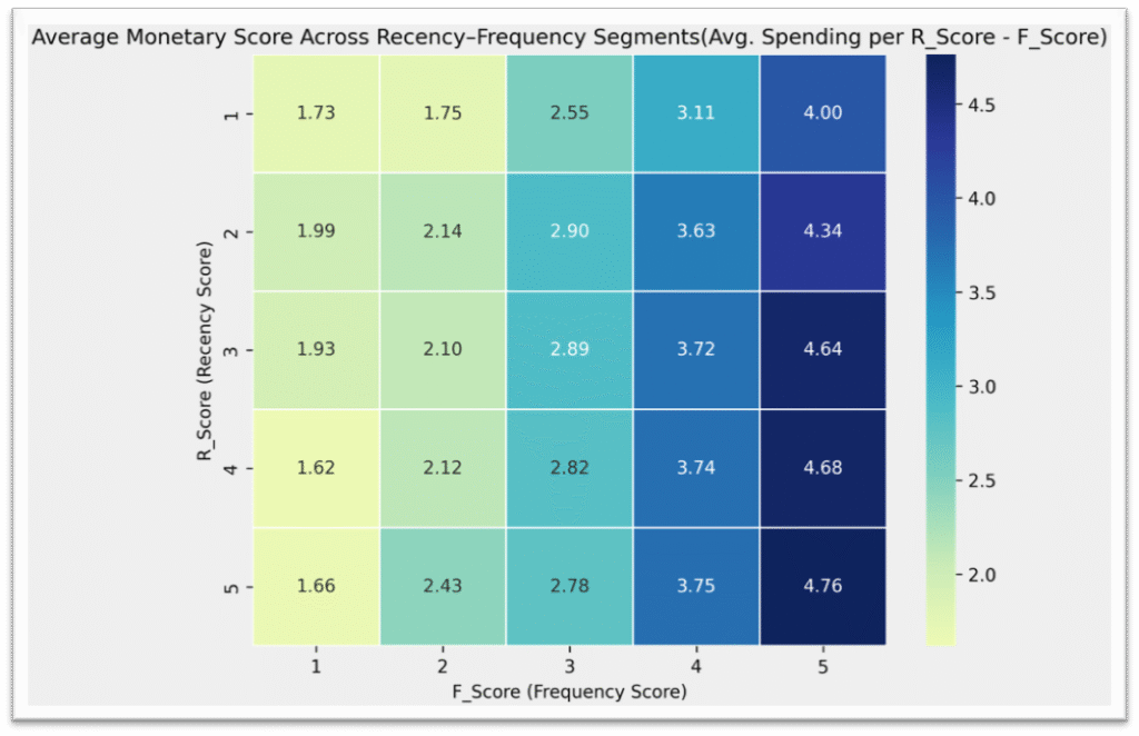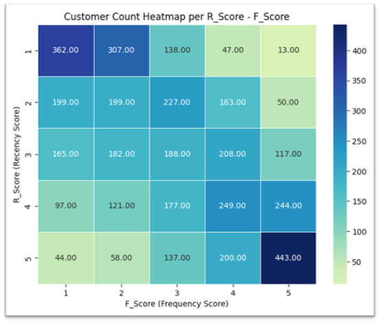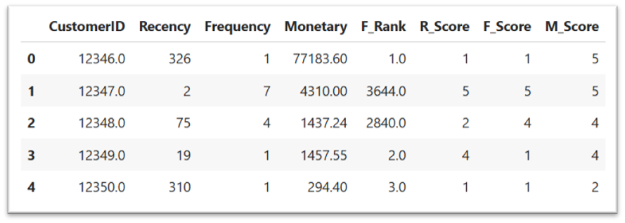 •Customers were ranked into 5 quantiles per metric and assigned scores from 1–5.